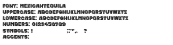 Con detalles decorativos que recuerdan a un stencil vintage, Mexican Tequila es perfecta para logotipos llamativos, carteles de eventos, empaques y productos con un tema cultural o festivo. Su complejidad y presencia robusta la convierten en una opción excelente para titulares donde la personalidad y el impacto son esenciales. Esta tipografía es ideal para diseñadores que buscan infundir calidez y un ambiente festivo en sus proyectos.